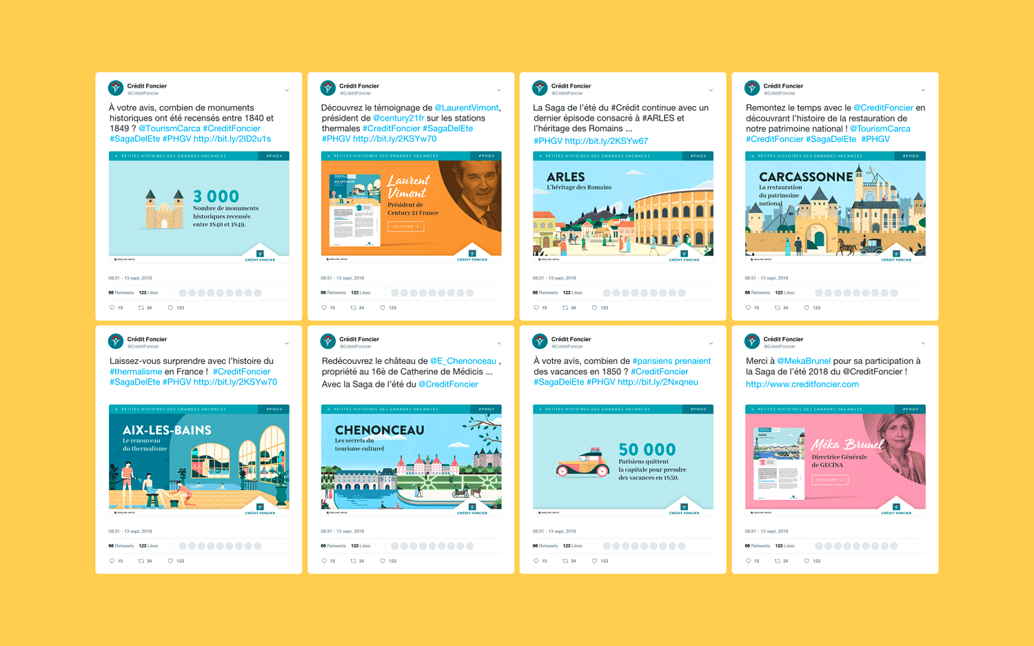 Chaque semaine, pendant tout l’été, une nouvelle destination est dévoilée sur creditfoncier.com puis relayée sur les réseaux sociaux.
