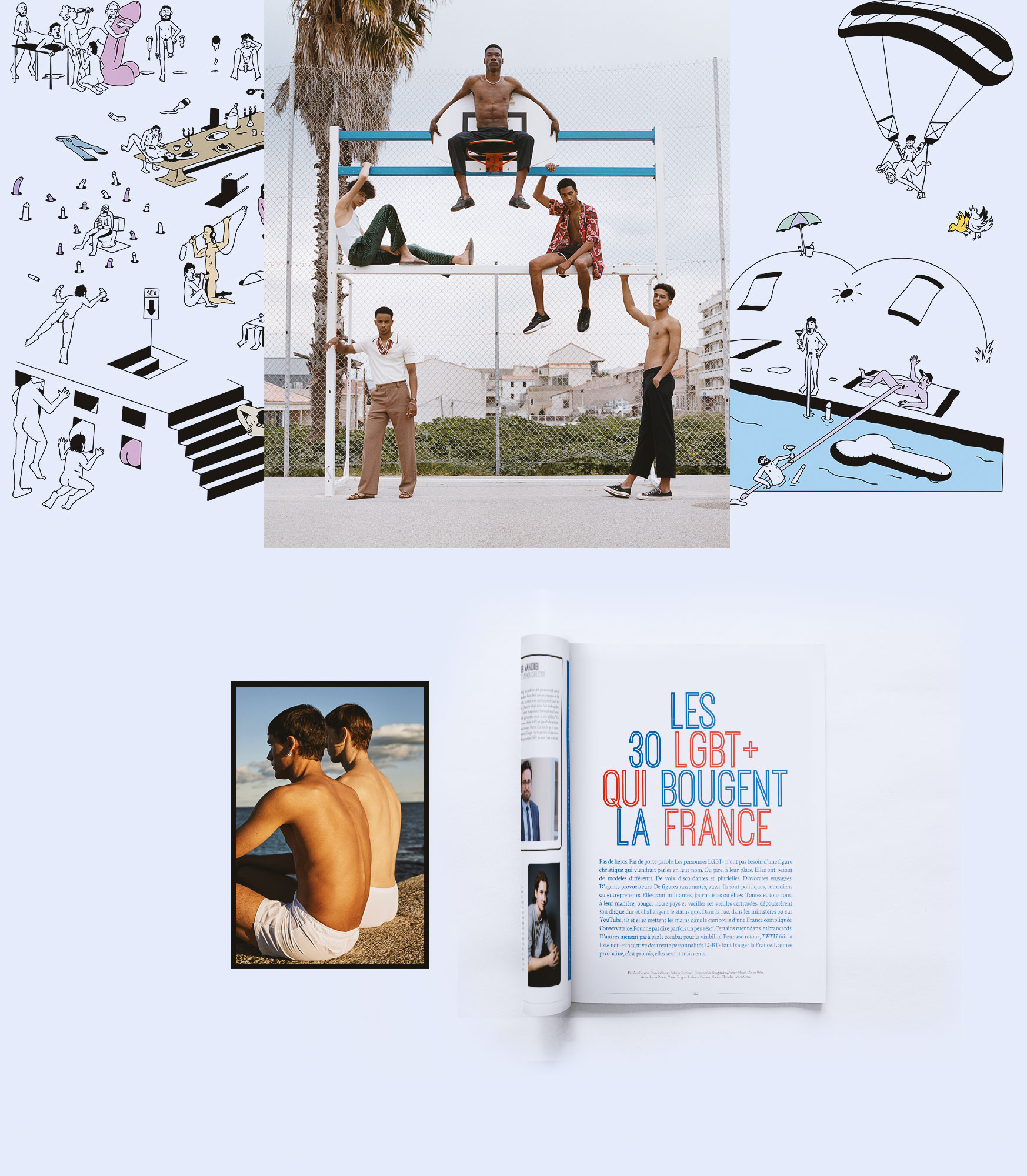 Ce projet mené pour TÊTU Magazine symbolise l’une des revendications du studio : accompagner leurs clients de la conception des contenants (magazine, site web, charte réseaux sociaux,…) jusqu’à la production de contenus (photos, dataviz, motion-design, illustrations…).